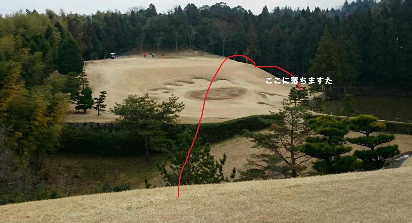 そう狙いはバンカーと左OBゾーンとの間の狭い空間、そこへ7Wでキッチリ運んだろーじゃないか!という事です