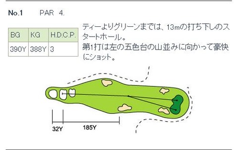 左下がりのライ、グリーン廻りのバンカー等に要注意。