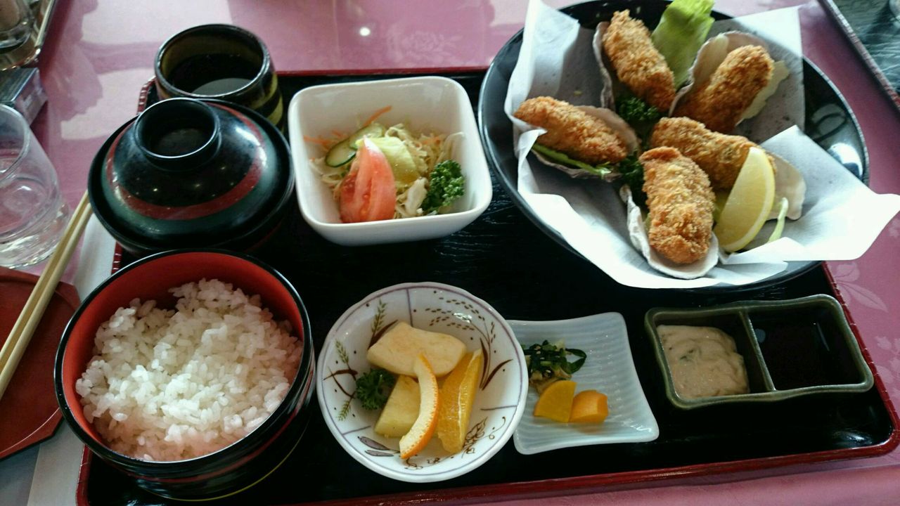 しかもカキフライがカキの貝殻に乗せられてるという憎い盛り付けですよ、おぬし、やるな!!