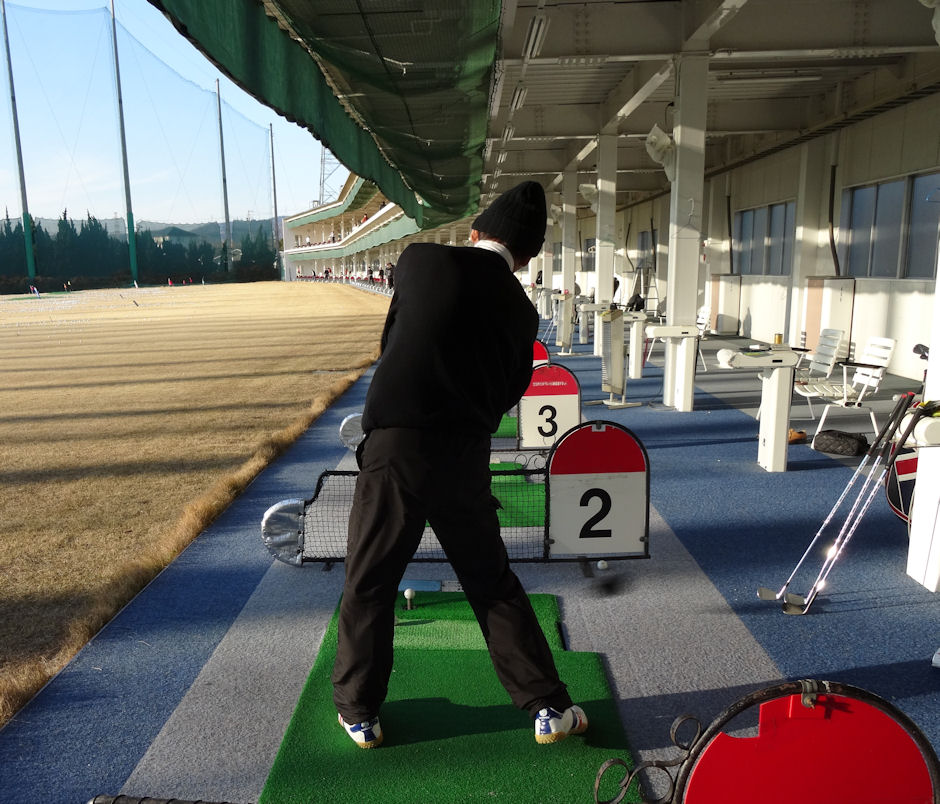 練習場で、シニア連覇して大御所に会った(笑)