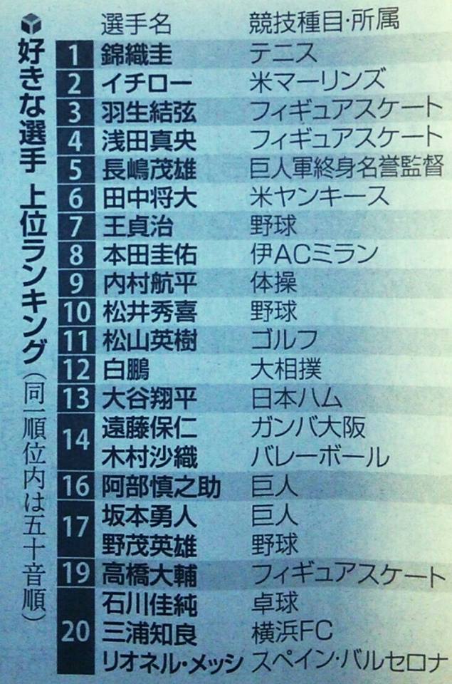 読売新聞社が行なったスポーツに関する全国世論調査で(2月21日紙面)