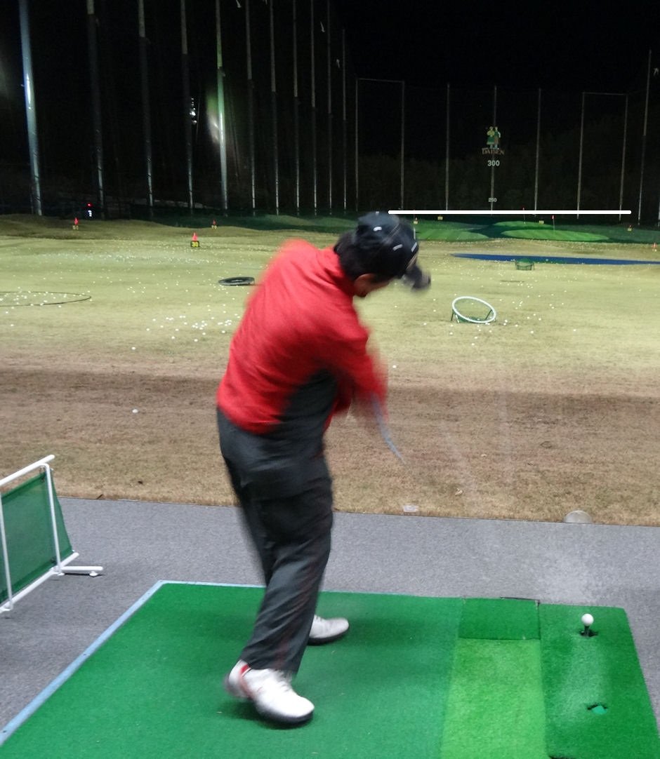テークバック中の頭の高さをラインを引いて、以下と比較である