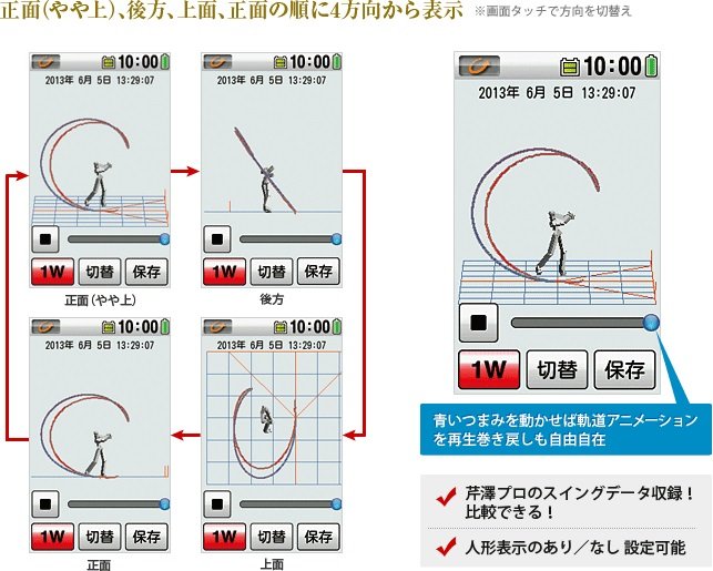 自分のスウイング軌道も判ります、上級者とどこが違うのかな?