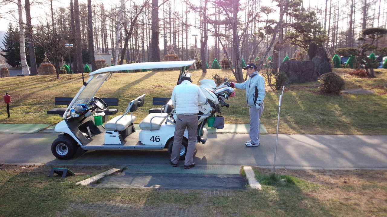 楽天GORA乗用カート付セルフ 8,000円、晴れ、無風、最高気温3℃、肌寒い程度