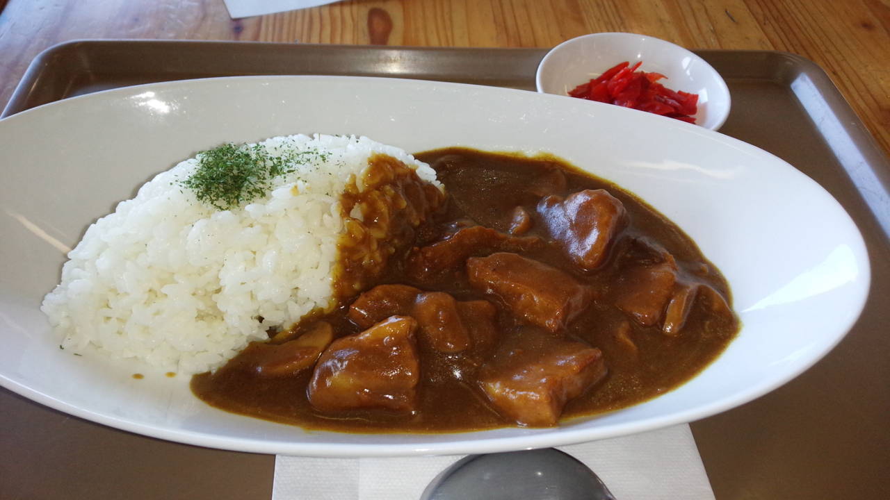 カレーライスの具は殆ど肉のみでしたが温かくて美味しかったです。
