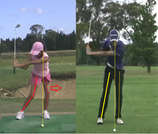 左膝の曲がりすぎはインパクト時にトップになる可能性が高くなる。