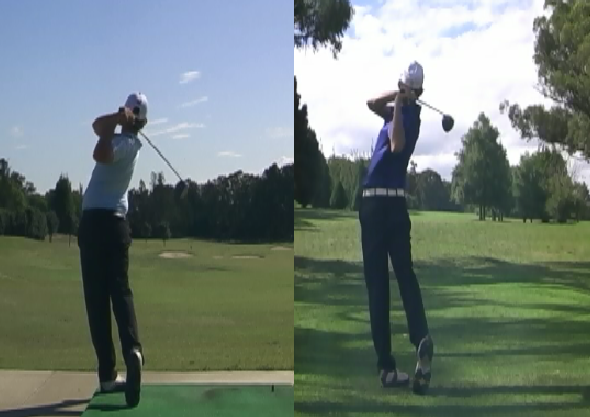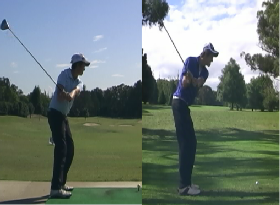 気持ち良くスイングしているのは左の12歳のスイングですが