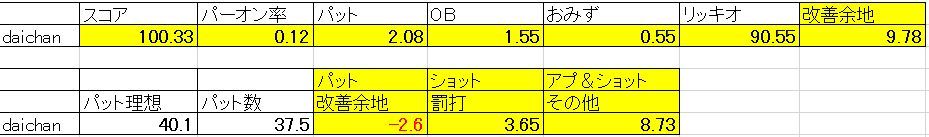 パットはもっと少ないかなーと思いつつも、年明け後のレオマ高原で47パットとかしてるので平均すると37.5ですが、直近の