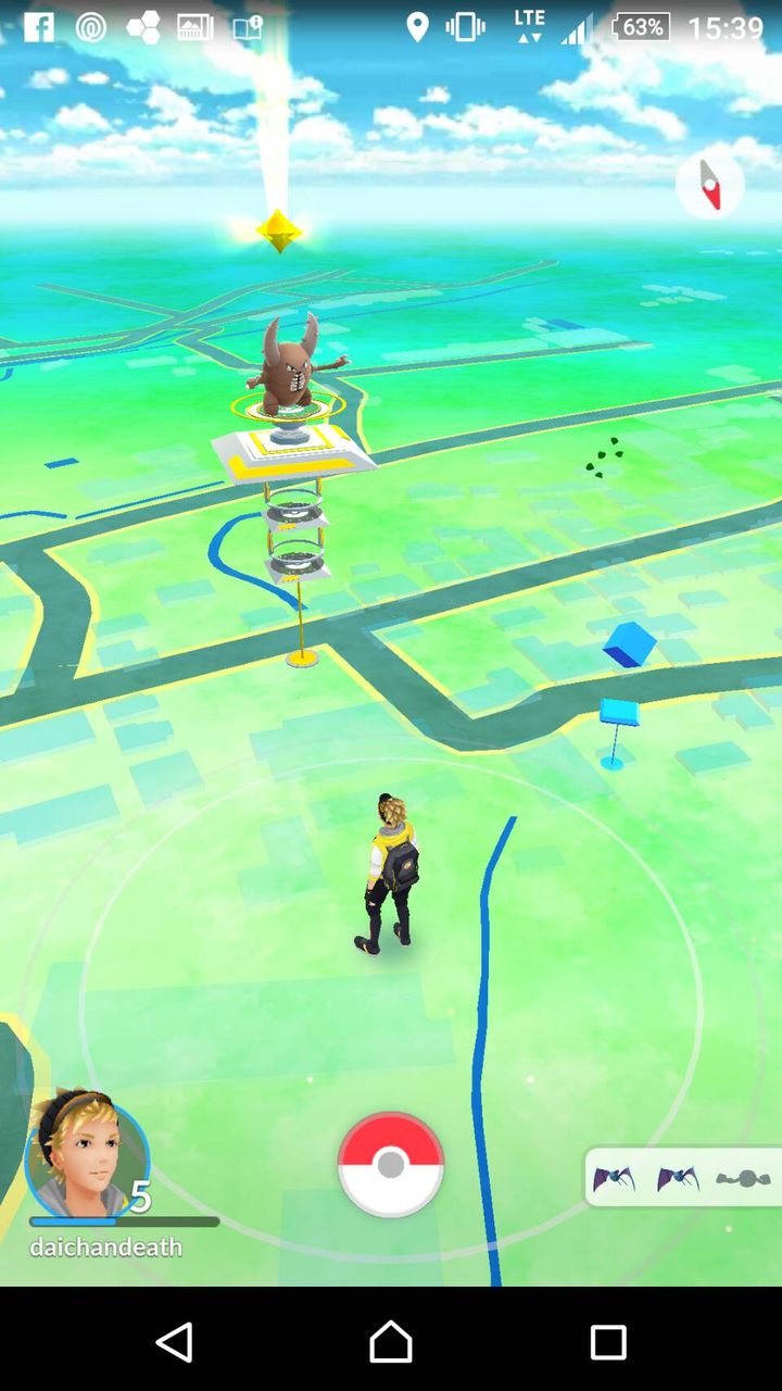 そーなるとポケモンジムへ行って対抗戦ができるようなんですが、それもわざわざポケモンジムまで移動しないと
