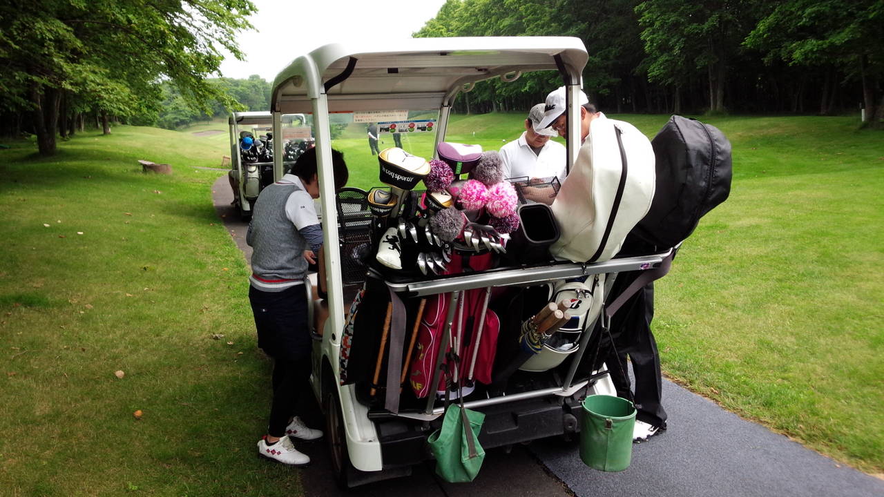 隣接するエミナGCを通り過ぎ奥のアイリスに到着。キャディバッグ