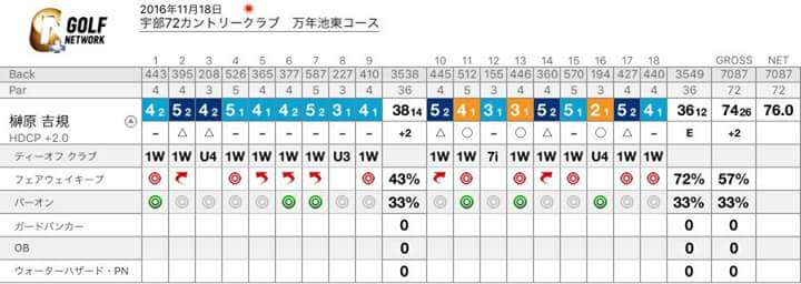 今日はインスタートだったのかな? 前半は36回のパープレー