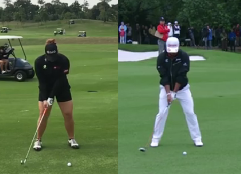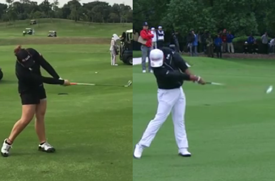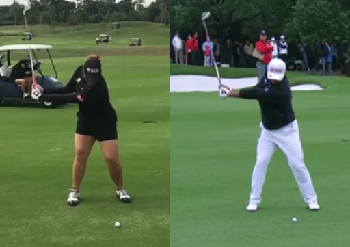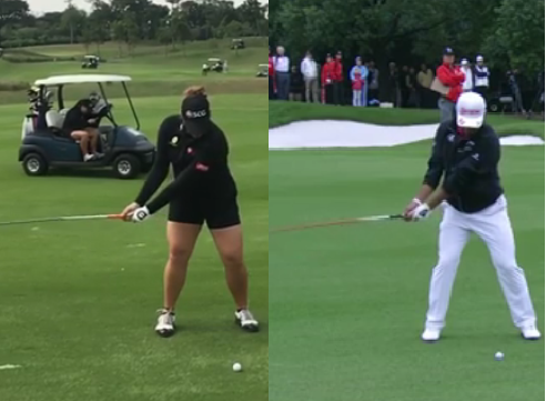 ダウンスイングで腰の開きが少し早いアリアはその内に修正するでしょう。
