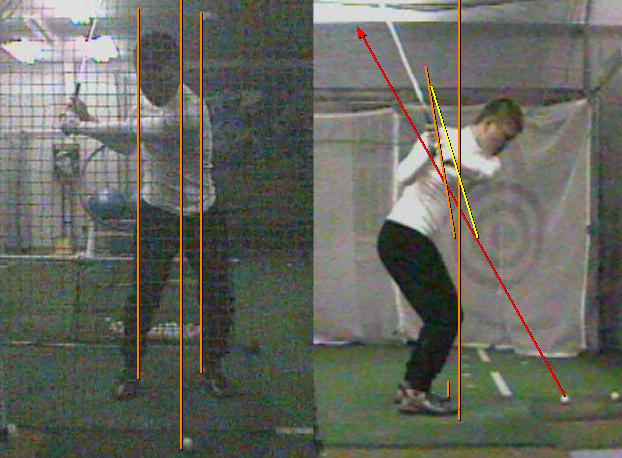 そして、上の図の位置でも同様に、バックスイングでの理想の軌道から湾曲し始めています。