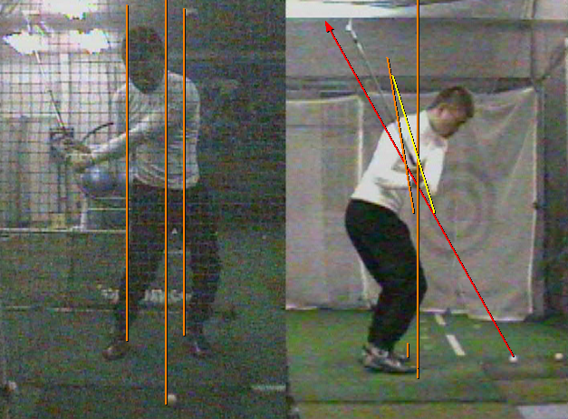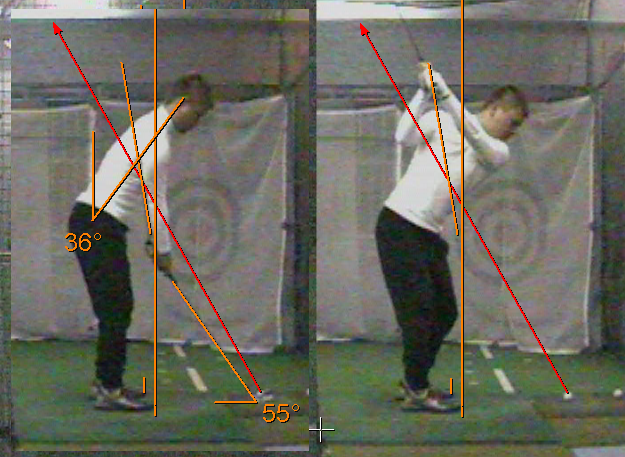 ところで上の図は、長瀬選手のセットアップとトップを後方から見た図ですが、これらの図とダウンでの後方図を見て、ある大きな問題点があることに気付くかもしれません。それって何か?細かいことではなく、基本的で重要な部分なのですが、一度考えてみてくださいね。