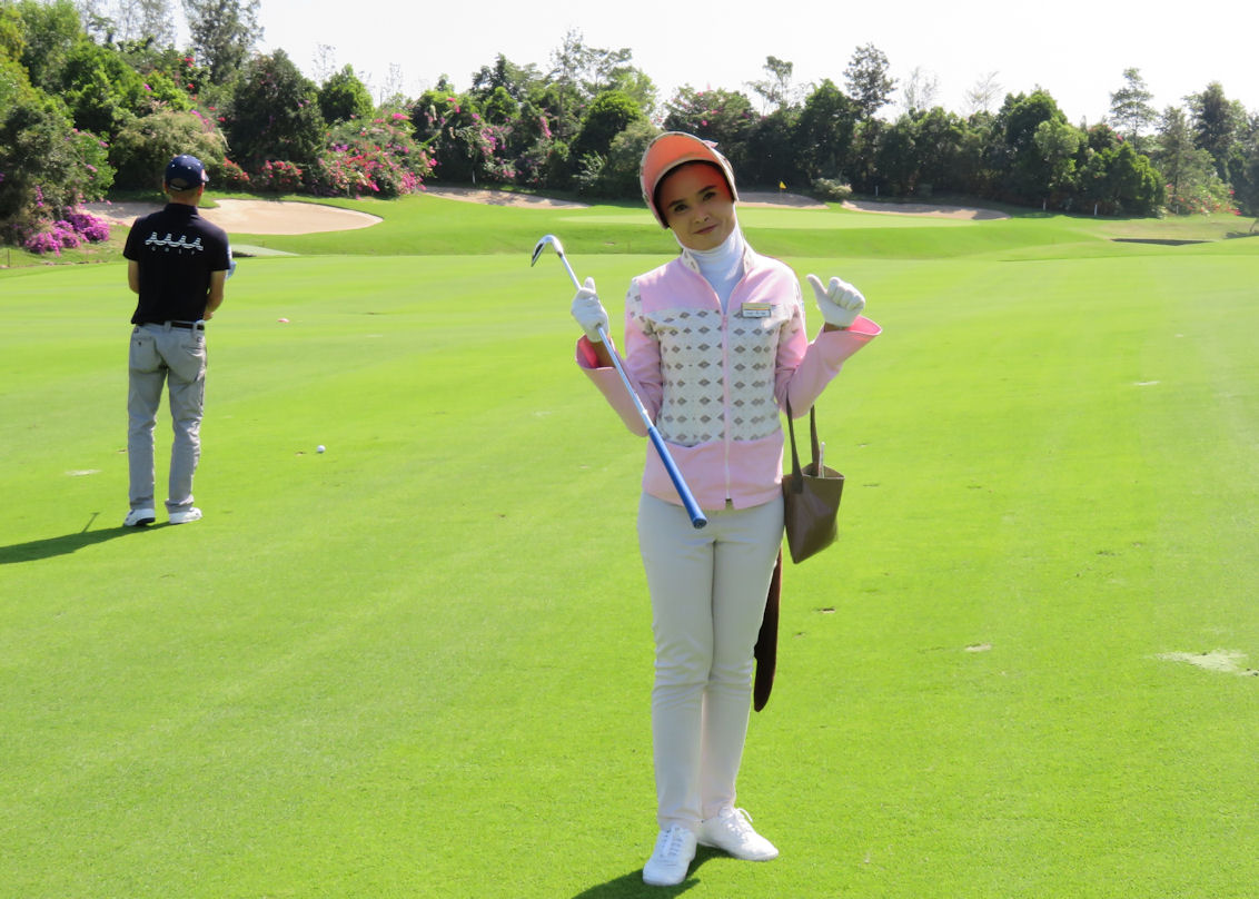 13番ロング・・やはりカメラを向けると、すぐさまポース!!日本ではありえません