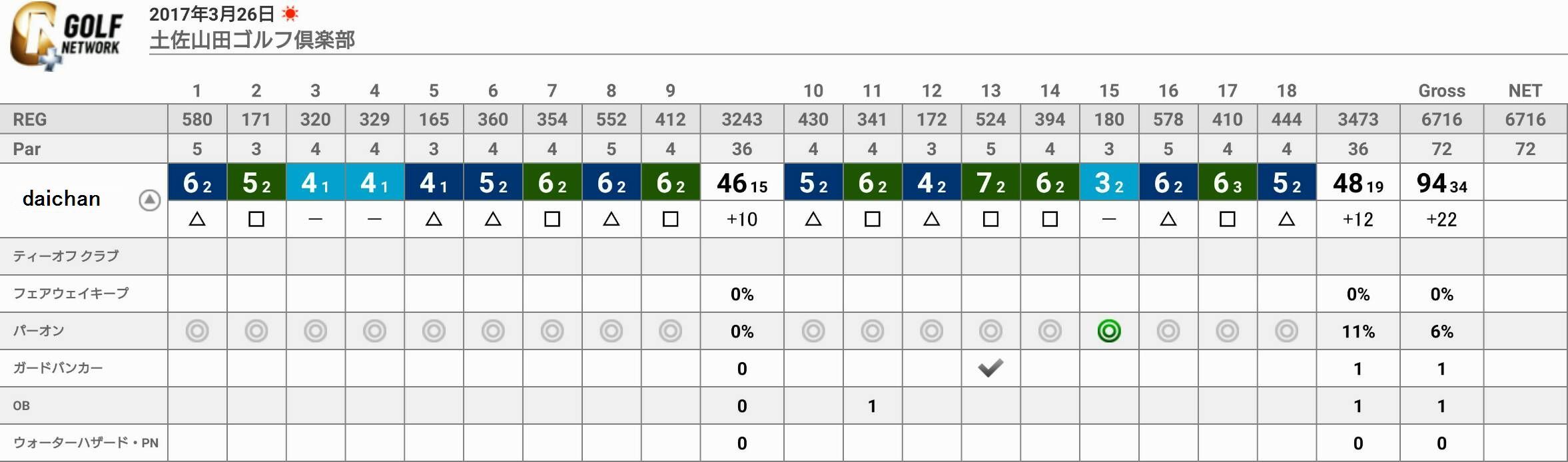 46-48の94っと、1か月ラウンドをしてない割にはまぁまぁなスコアではありますが、