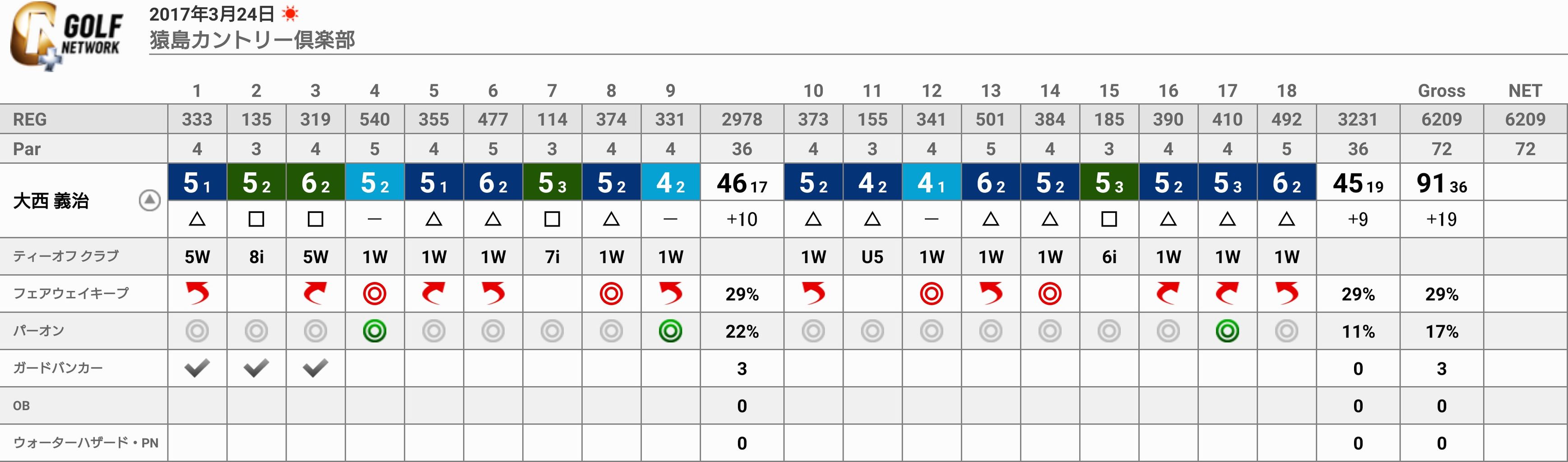 しかし同じコースなのに、グリーンとグリーン周りがこんなに難しかったっけ?と感じることしきり。前回終了後は、もうちょっと伸ばせるなんて思ってたのになぁ。
