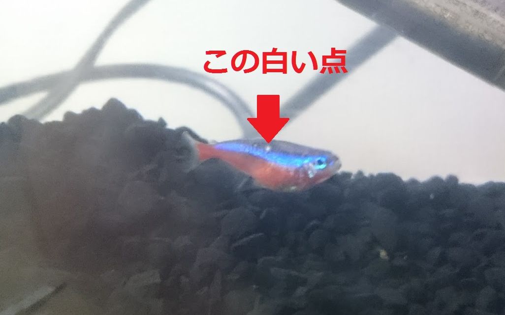 ところが、白点病は白い点のようなものがどんどん増えていくのが普通なのですが、この個体の