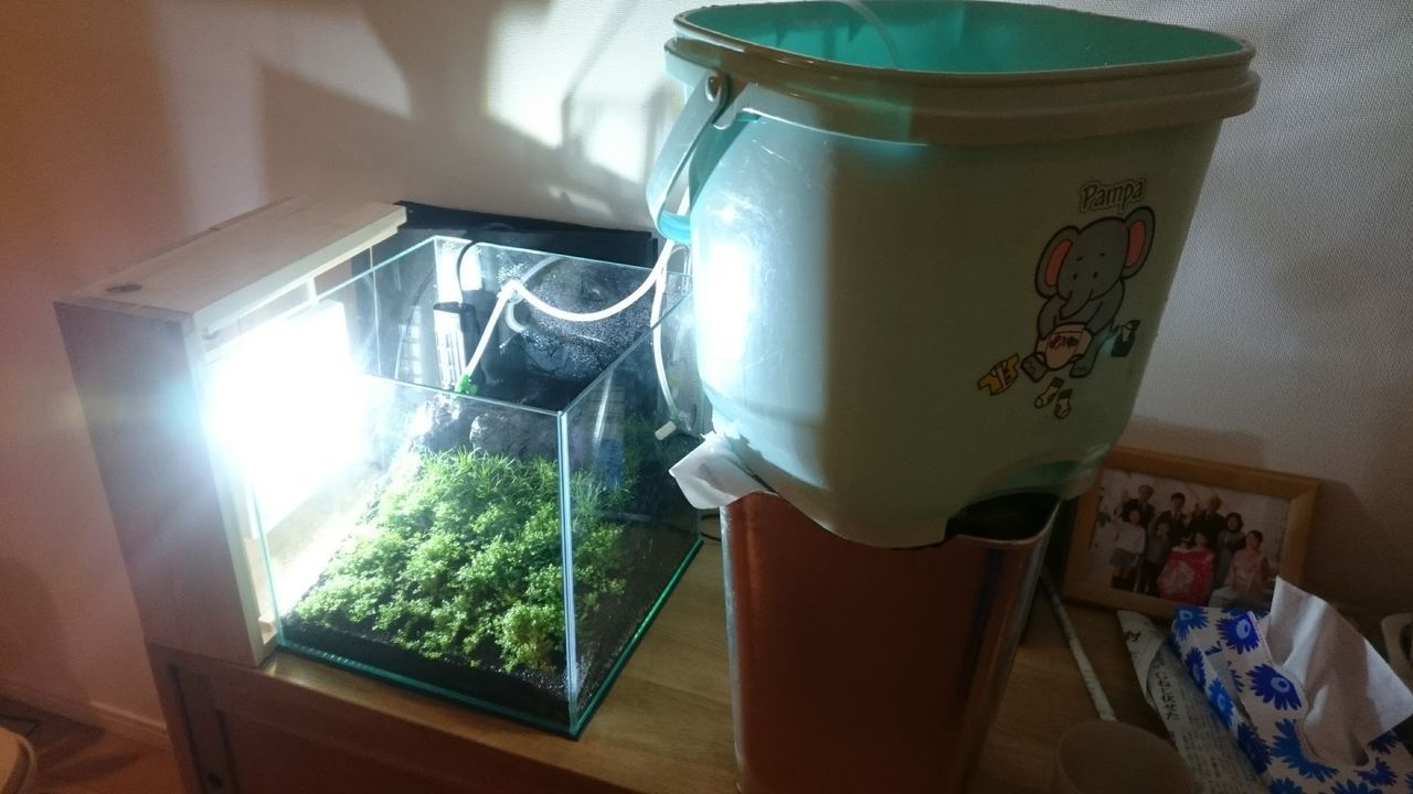 この後、CO2のセッティングやら電源の引き回しなんかをしてましたら夜中の1時を過ぎちゃったので