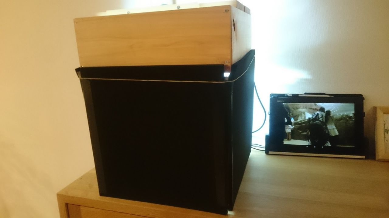 こいつの良い所は、遮光しなくて良い時間には、折りたためて水槽の裏側に収納できる所です