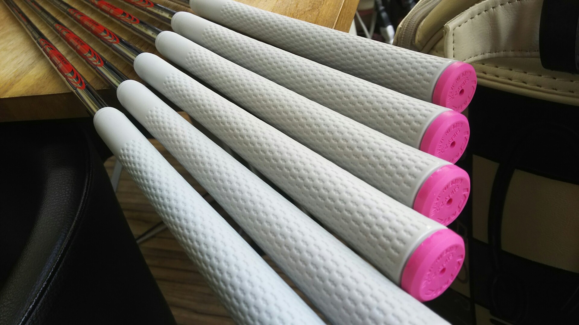 グリップはこのところ、ベースはイオミックのスティッキー2.3のシルバーグレーで、今回はエンドをピンクにお茶目に