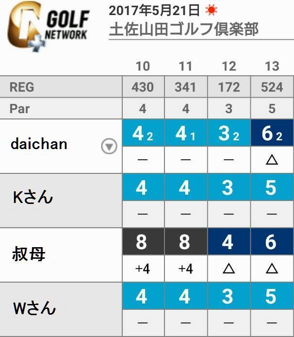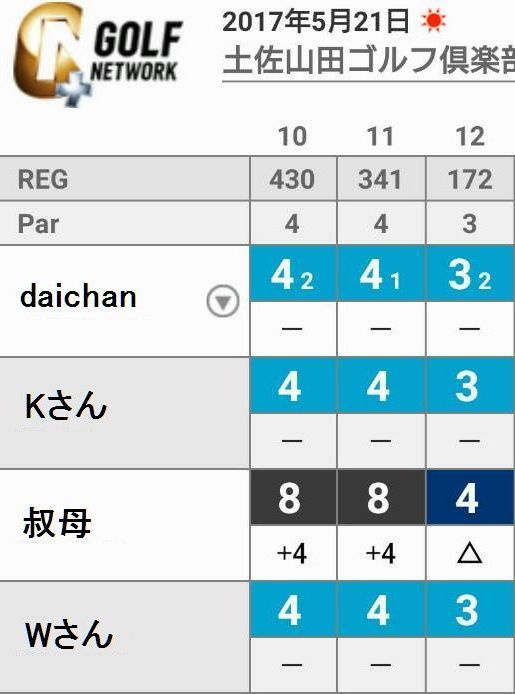 わたしゃ結果いつもとあまり変わらない45、Wさんは38、Kさんは自己ベストの36という事に