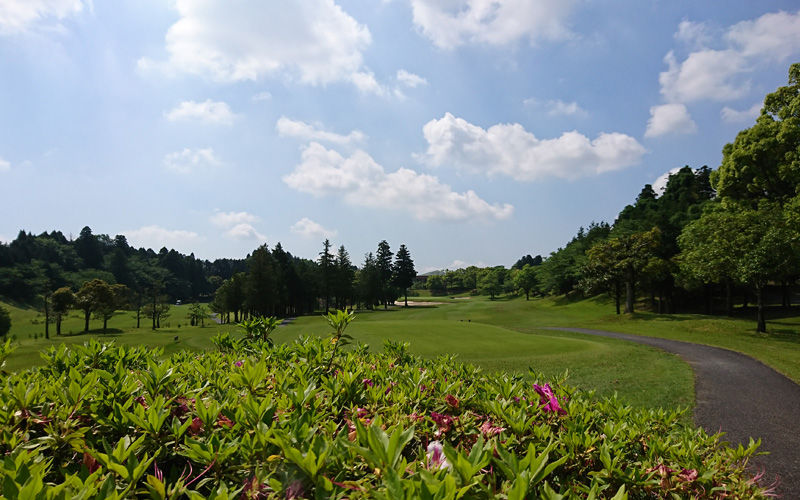 まさに五月晴れの大栄カントリー倶楽部。昨年の秋以来で2回目。なだらかな丘陵地にあるコースで、日本庭園風景をはじめとして、とても綺麗なコースです。