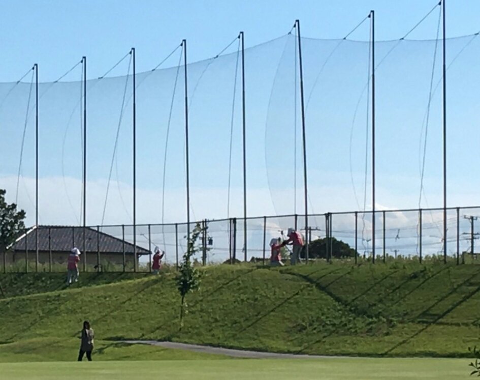 また堤防一体にある防球ネットも、下ろす訓練をキャディーさんが実施してます