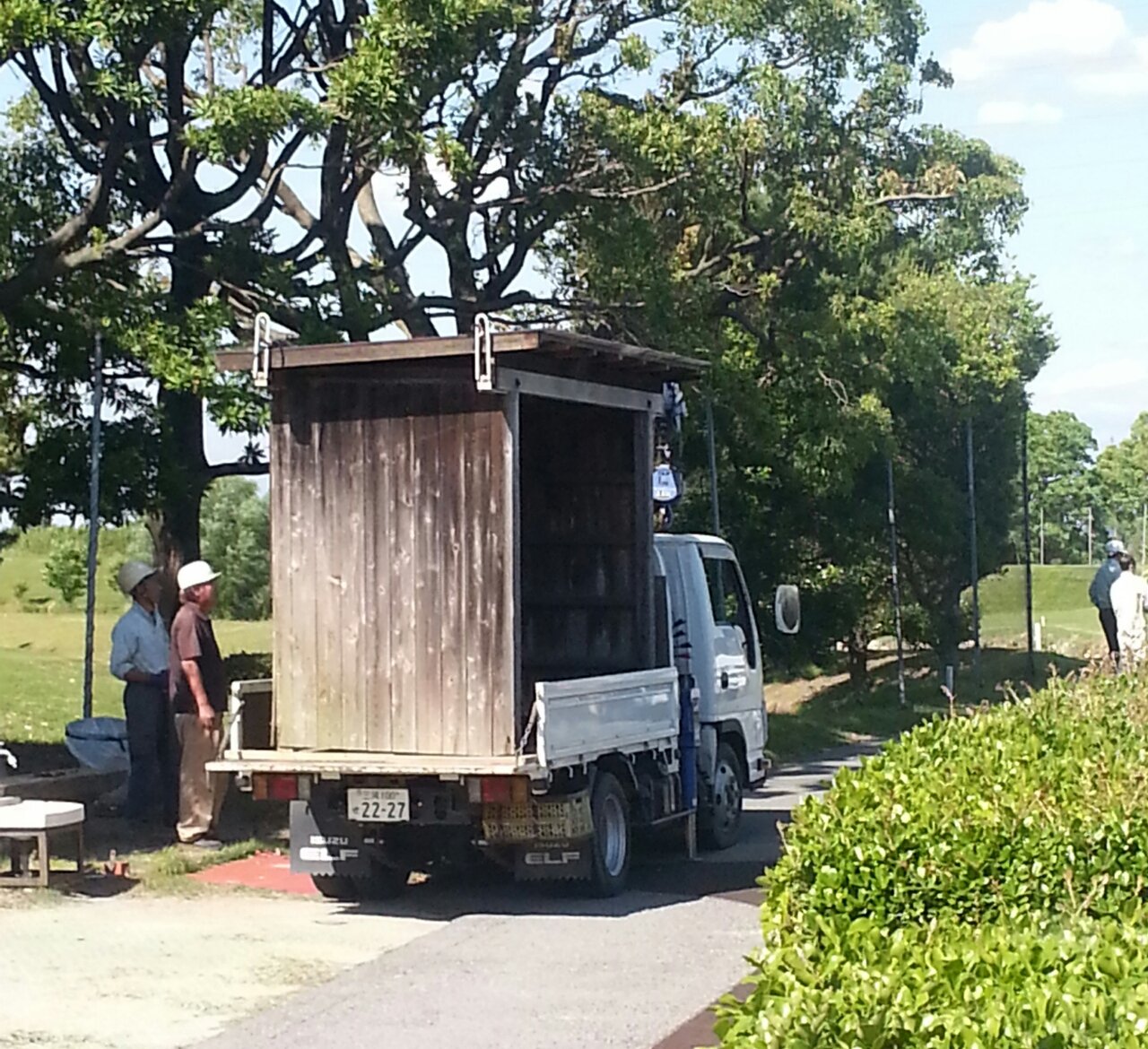 今日はその訓練の日でした、小屋もクレーンで吊り上げれるようになっており