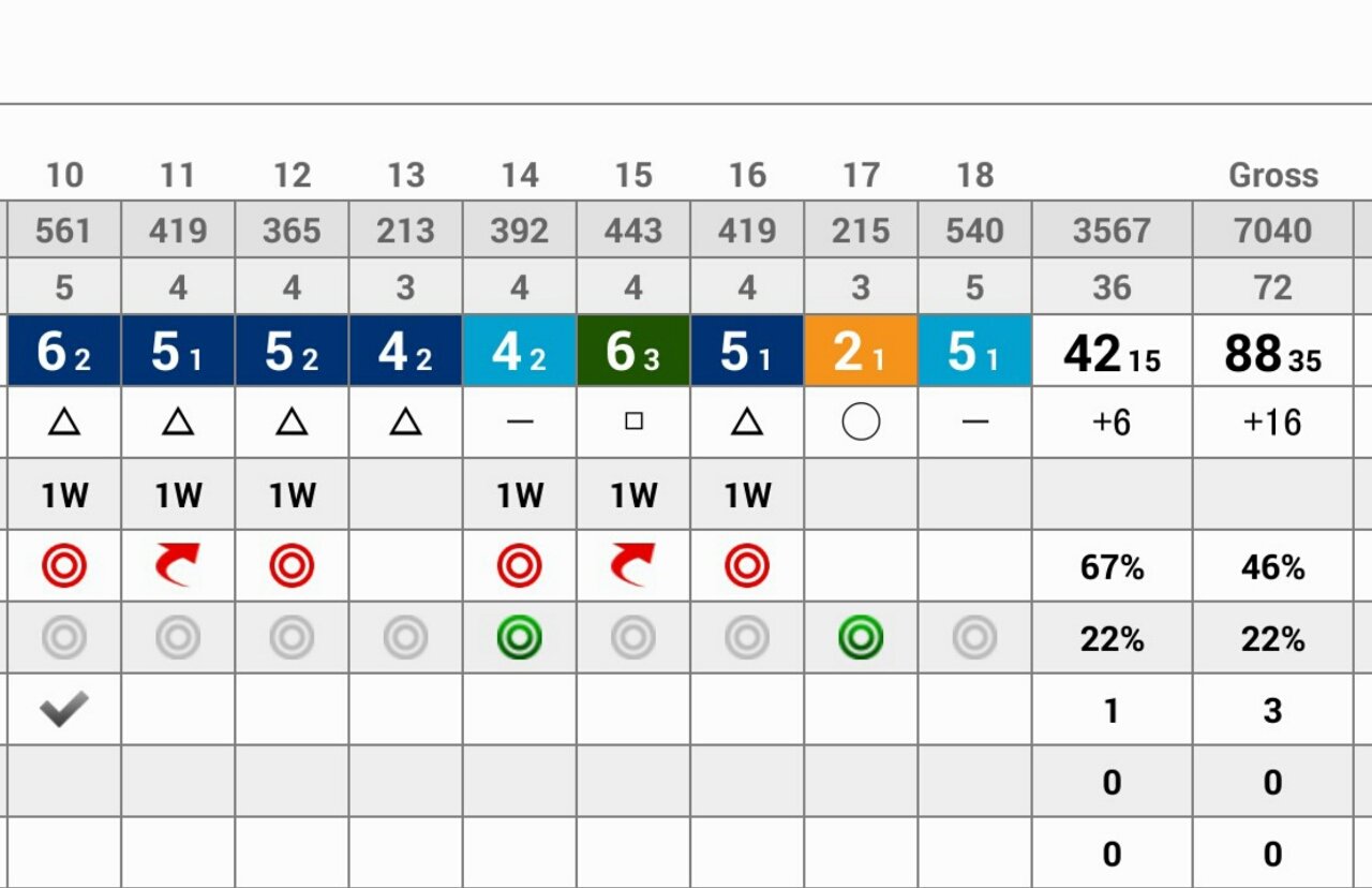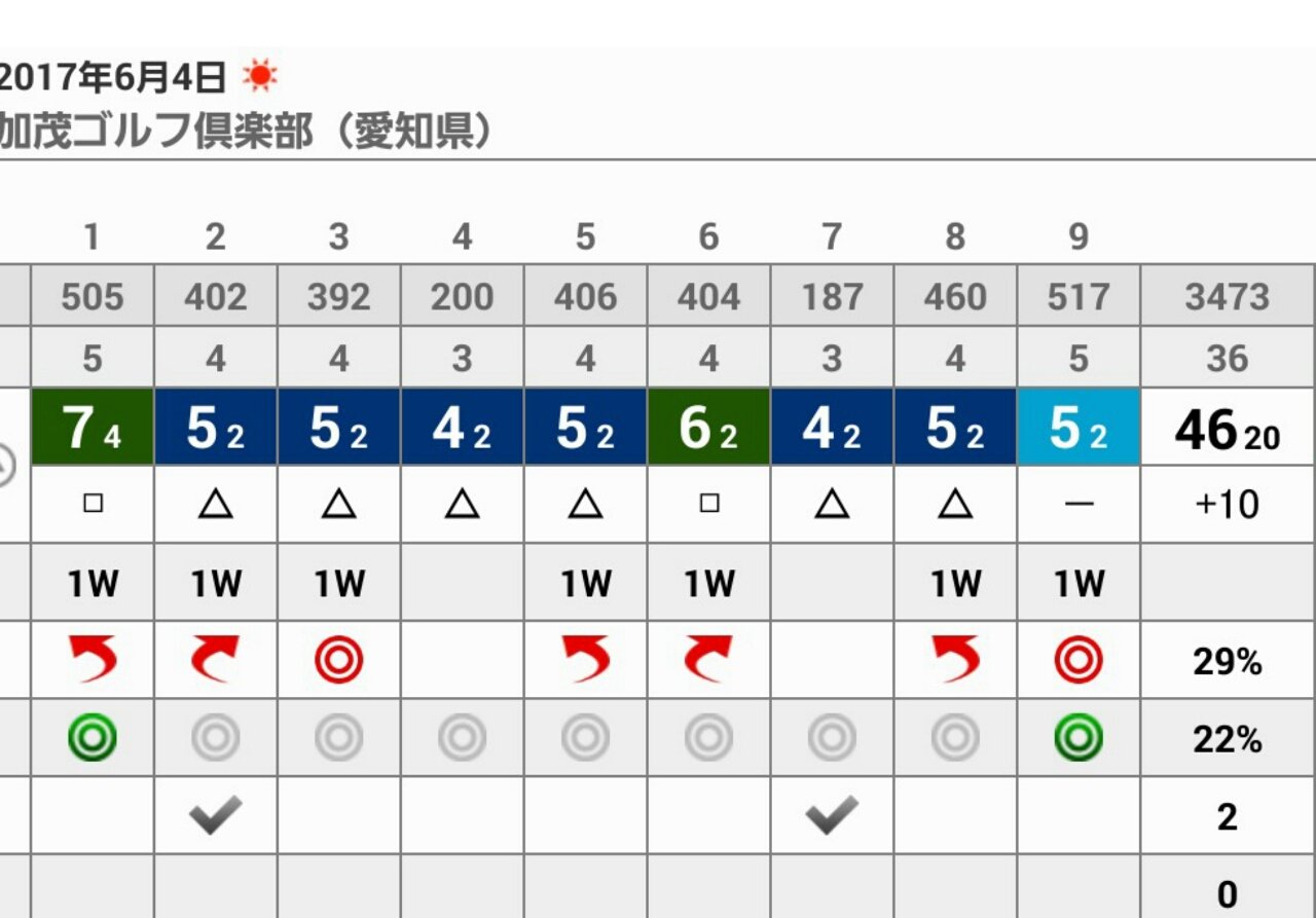 9番でやっとの初パーが取れたが、10オーバーの46回、