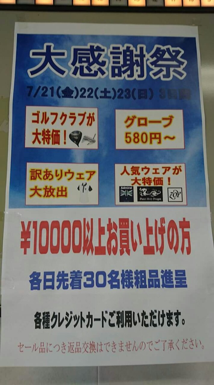 毎日、毎日暑いですね、ゴルフ関連のクリアランスセールの情報です