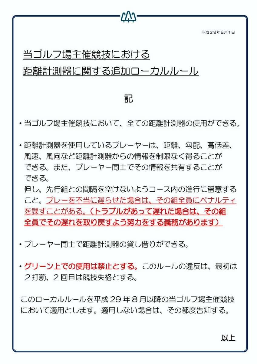 先日、森林公園での事ですが、今月の月例競技からレーザー距離計がOK