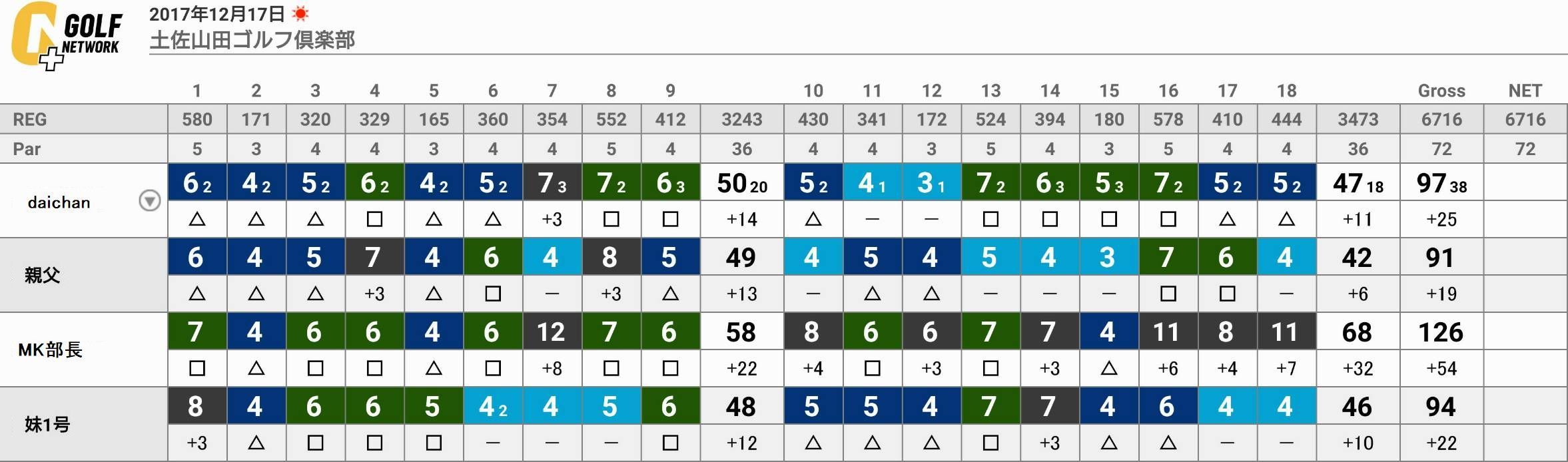 っで、そのMK部長でありますが、先日私と回った時のスコアはコレです