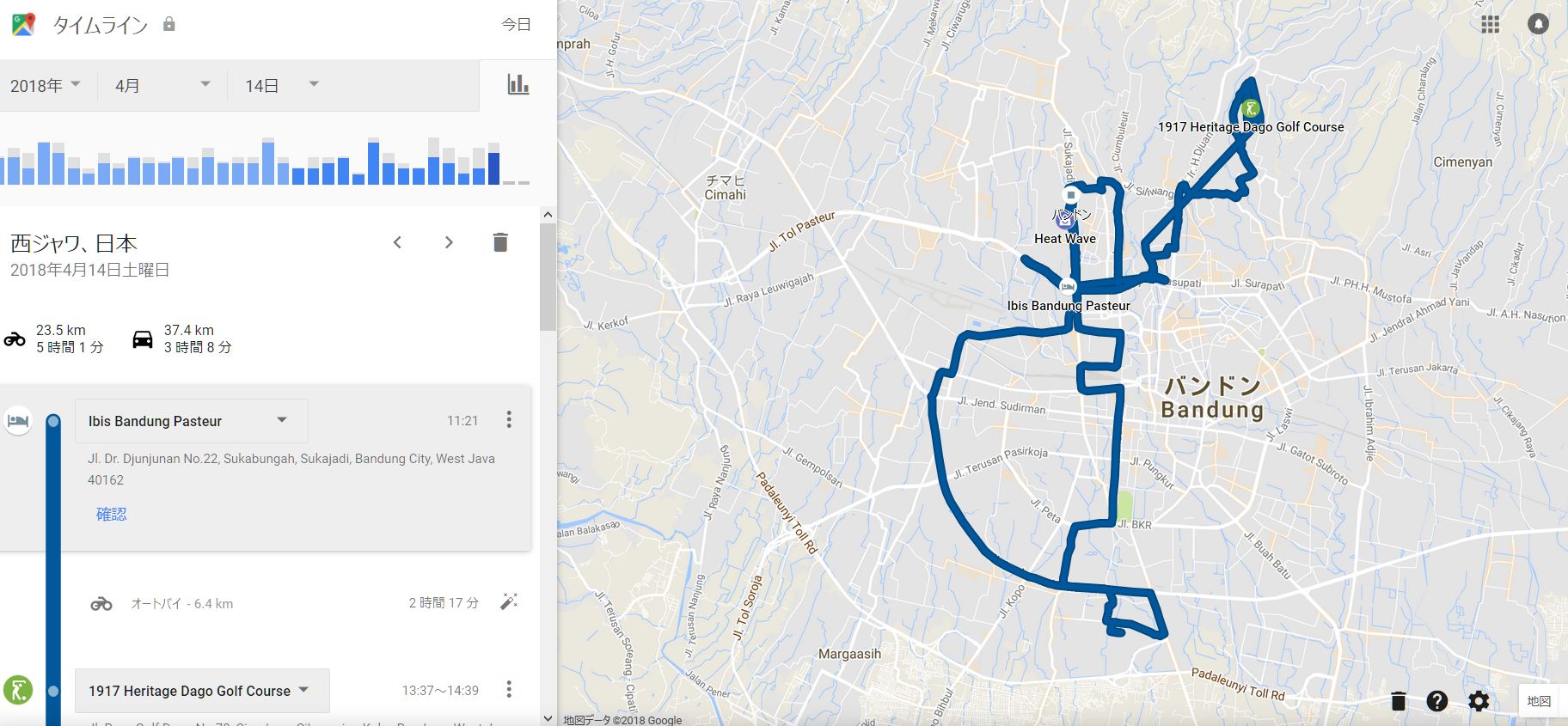 Maps Timelineという所をクリックしますと、地図が表示されましてどこをどう動いたのか?