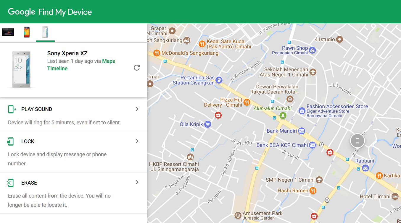 後ですね、FIND MY DEVICEと書かれてる左上の部分に緑色の文字で表示されてる