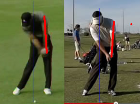上の図は、昨日ご紹介したインパクトでの左腕の角度の違いの図です。アベレージゴルファーは、タイガーのように左腕が垂直やそれを過ぎるまでインパクトを待てず、早くリリースしてボールに当てにいってしまいます。その結果、様々なミスを引き起こしやすいスイングになるわけで、ショーンのインパクトはそういう問題が感じられるインパクトです。では、上の図からわかる重要な問題があるのですが、それは一体何なのか?考えてみてください・・・(いくつかあるかもしれませんので、私の考えるものと違っても気にしないでください。)それではここでCMです・・・