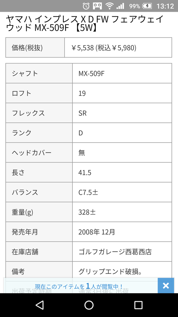 ですが、ロフト19度、41.5インチ、純正SR