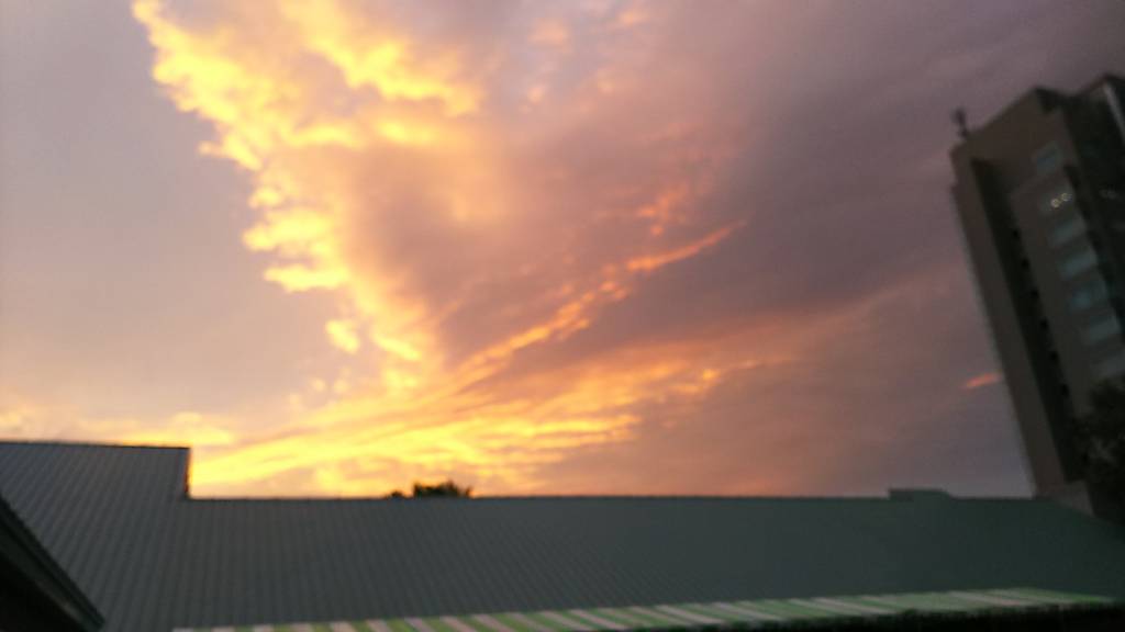 雨は降らず、到着時の朝焼けが綺麗でした