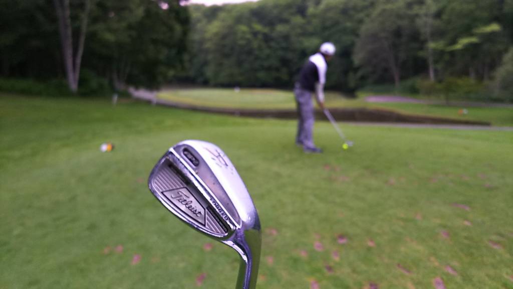 難関10番par5は2打目5鉄、3打目7鉄でパー