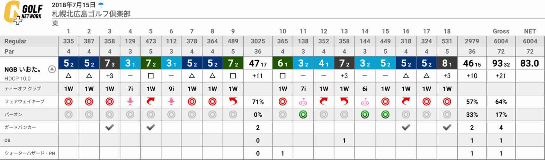93とイマイチでしたが「par3を全てパー」とした
