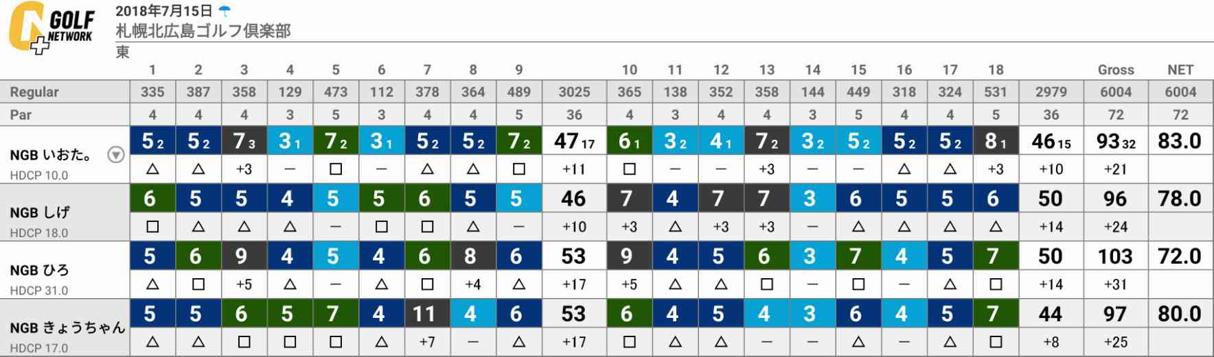 久々のラウンドを満喫されていて、NGBハンデ