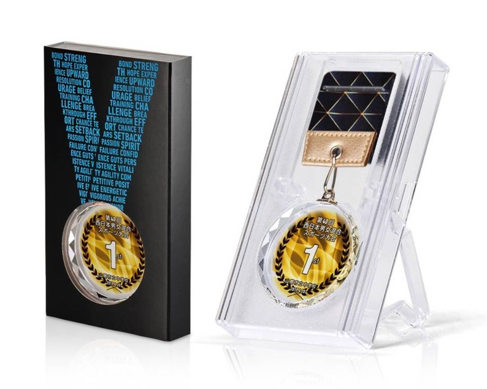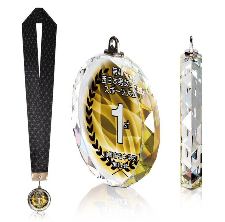 余り古臭いデザインのメダルは嫌なので、これは大会名なども自由に刻印出来るようですし、クリスタル製は目新しくて見栄えすると思い、購入する事に決めました!
