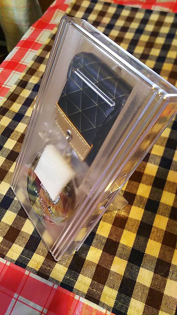 リボンの柄は赤や紫など派手な色あいも有りましたが、シックな黒っぽい物を選択し、重厚感が増したように思われます。メダルを収納するプラスチックケースは前回の金メダル同様、脚部を引き出すと立てて飾れる仕様になっています。