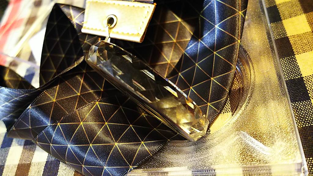 クリスタル製のメダルや盾は大概高価なのですが、これは2000円ちょっとと破格の値段でした。ショップの説明によるとお得な値段のサービス品らしく、リボンもカラフルな数種類から選べて見栄えしそうでした。