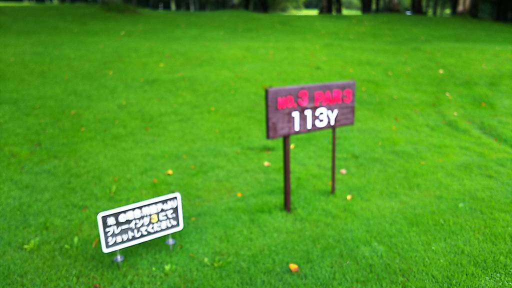 此処のレギュラーティーは前方後方に2ヶ所有り、その日によって113yardだったり155yardだったりしますが、昨日は運良く前方のティーでした。僕は9鉄でグリーン中央に乗り、ひろさんもウェッジで乗せて来ました。