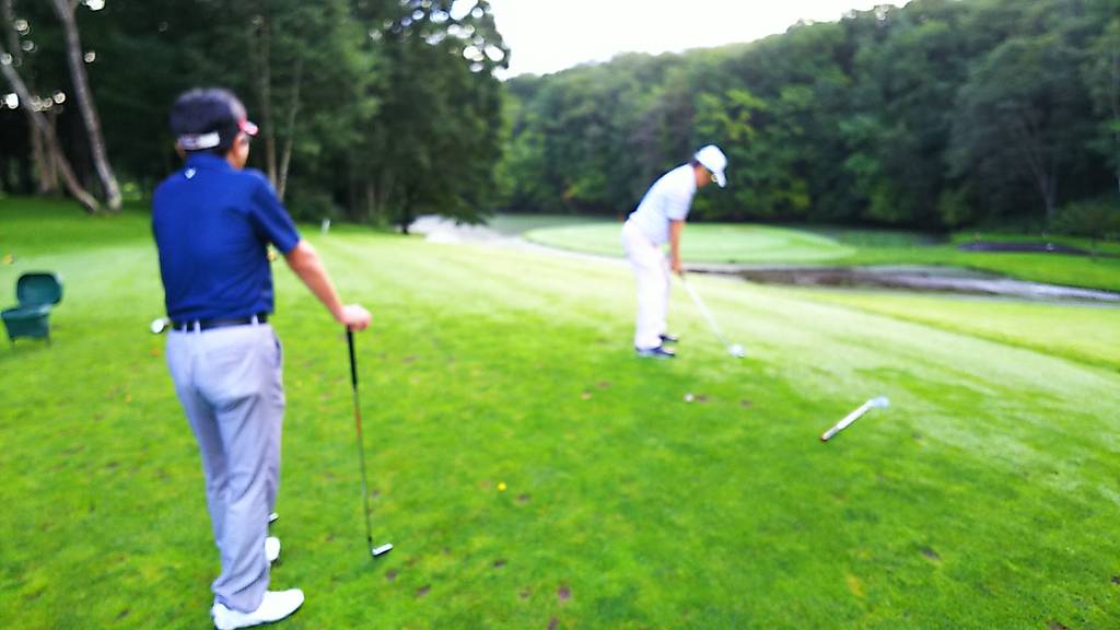 昨日の(日)はW台風の影響で芝が濡れた中での秋コンペの下見ラウンドとなりました。天気は途中かなり晴れて暑さでバテるくらいでしたが、朝6:00スタートと言うのもあってか前半アウトは早朝プレー同様にグリーンも朝露で重かったです。