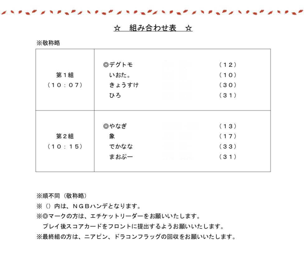 今回は元々9/9(日)開催予定だった秋コンペが地震の影響で1ヶ月以上延期となり、今月末は都合が悪い方が多い様で参加者は中々集まりませんでした。