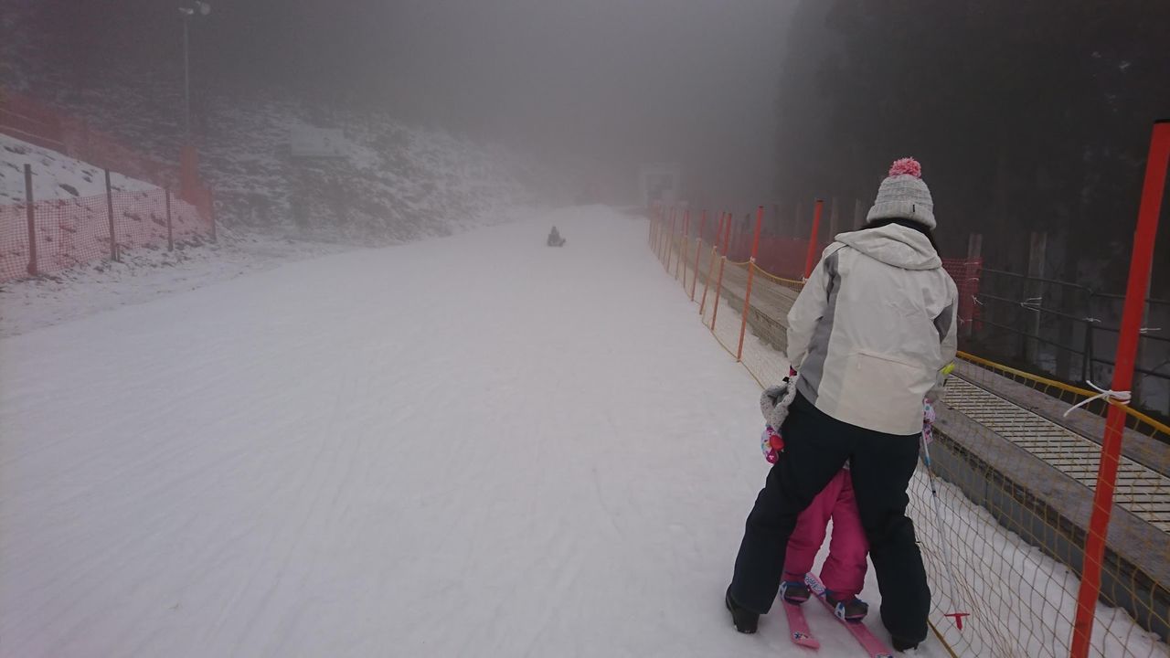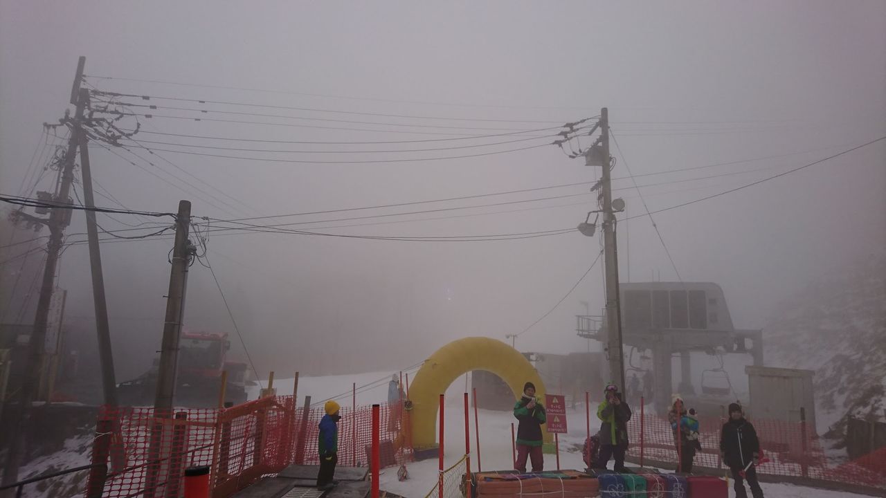 視界が悪いのに、雪不足でコース幅が半分以下、場所によっては3分の1ぐらいしかありません・・・・