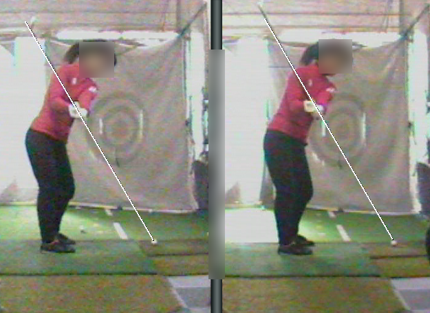 しかし、今回の検証では、トップをフラットにしたことで、ヘッドスピードが48弱から45強くらいに落ちたにも関わらず、飛距離はほとんど同じ、という結果になったのでした。どうしてそうなったのかというと、数値的な変化は本編を見て頂くこととして、結局のところ、パワーが無駄なくボールに伝わるようになった、ということです。だから、ボールが重くなり、力強く飛ぶ球になったのです。しかし、本人的には思い切り振れないので、なんとも不完全燃焼感がある、という感じです。しかし、将来的にはフラットなトップから同じくらい気持ちよく振れるようになれば、300yも不可能ではない、ということがわかったのでした。