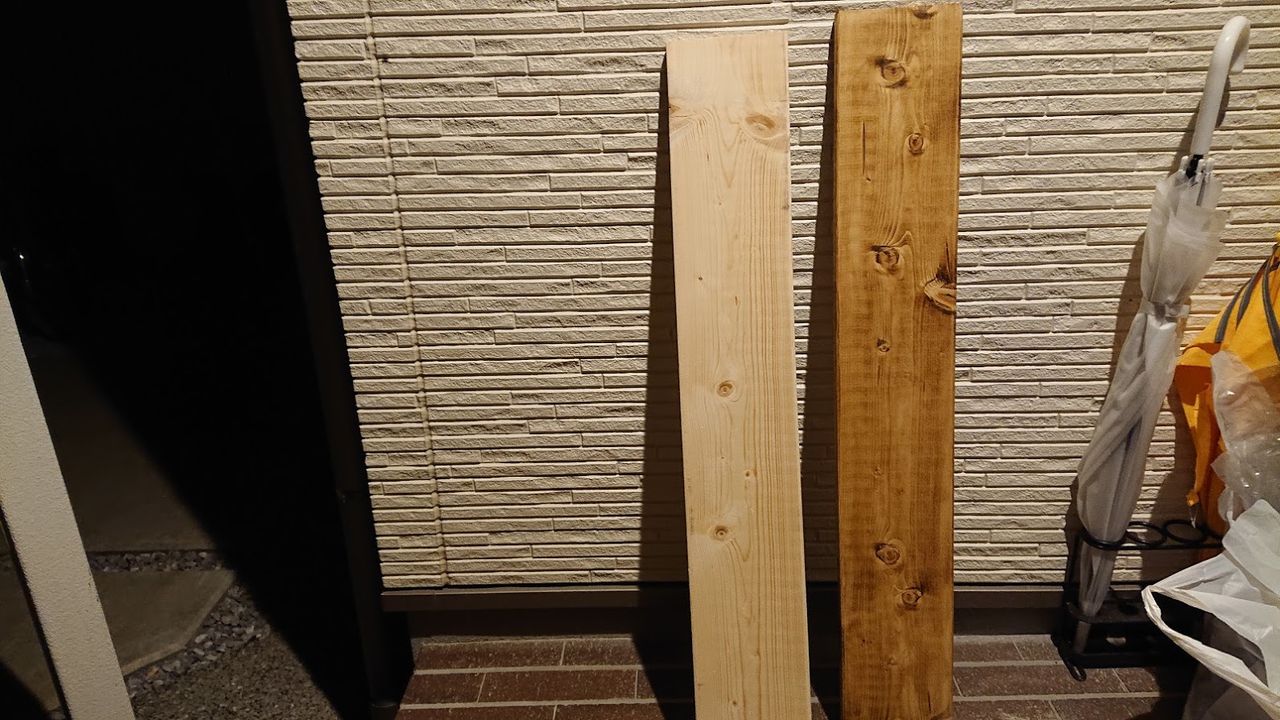 次にテキーラテーブルの天板です、1バイ6の木材を91㎝でカットしただけのものに